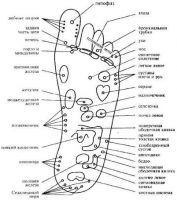 В процессе массажа наверняка обнаружатся болезненные точки, обходить их не следует. Если у вас имеются хронические болезни каких-то органов или же просто где-то болит, найдите соответствующие участки на рисунке и уделите побольше внимания этим точкам на ваших ступнях. Только делайте это осторожно: сначала разомните район вокруг чувствительного участка, только потом начинайте на него давить — сначала легонько, потом чуть сильнее, пока боль не притупится или не исчезнет совсем. Посвятите каждой ступне от 5 до 10 минут. Разминать ступню можно кулаком или костяшками пальцев.