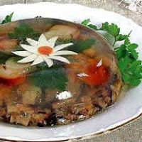 Продукты: 100 г. солёных или маринованных грибов, 5 г. желатина, 125 г. грибного отвара или бульона (можно развести кубик), зубчик чеснока.